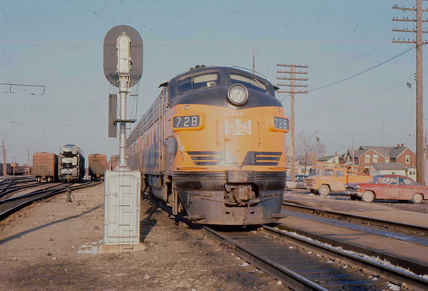 ![]() The leased Bessemer & Lake Erie F-units were reliable which was a very important factor when it was time to consider extending their lease, on multiple occasions. (Doug Hately photo / Bruce Chapman collection) | ![]() The Bessemer lease units were well liked by CPR because the F-units were m/u compatible with CPR's existing road power. This November 1964 photo shows CPR #8427 mated to B&LE F7B #718B. (John Whitmore photo / Mark A. Perry collection) |