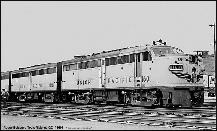 ![]() UP FA #1601 at Trois-Rivieres, QC Yard in 1964. (Roger Boisvert photo (Ron Vicoskis collection) |